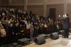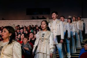 Молодежь, увлеченную хоровым пением, большая сцена концертного зала мобилизует на творческие взлёты. В исполнении сводного хора Актюбинского высшего гуманитарного колледжа, АРУ им. К.Жубанова, Западно-Казахстанского медицинского университета им. М Оспанова (хор им. А.Гизатулиной) вновь эффектно прозвучали и «Siyahamba», и «Oye».